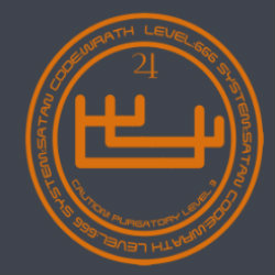 徽章上的文字:LEVEL:666 SYSTEM:SATAN CODE:WRATH CAUTION! PURGATORY LEVEL 3